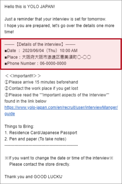 Japanese people are strict when it comes to time. Make sure you leave your home a little earlier when going to the interview location.